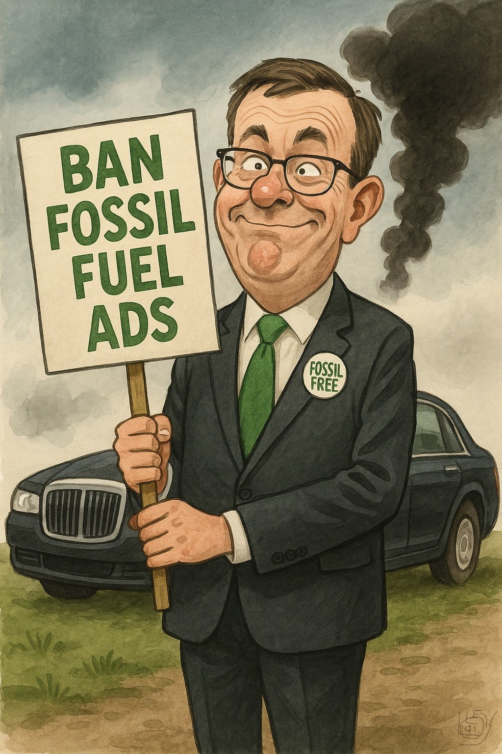 For context, “fossil fuel advertising” is not just about oil companies buying space on billboards. It is part of a growing international movement that treats fossil fuels not as an industrial reality but as a moral pollutant. Campaigners want oil, gas, coal, petrol cars, diesel vans and even flights advertised less, or not at all. The aim is to stigmatise, not replace.