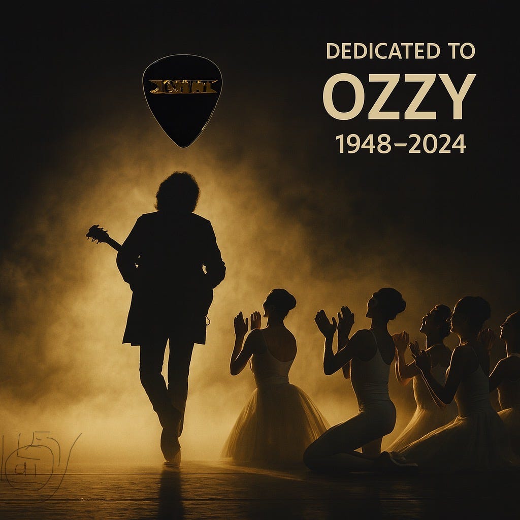 For me, the memory of Villa Park, the surprise of the Hippodrome, the laughter in the dressing-room, and the pick in my pocket all come together as part of the same story. Twice now I have seen the impossible fusion of ballet and metal made real. Twice I have witnessed history. And this time, in honour of Ozzy, it meant more than ever.