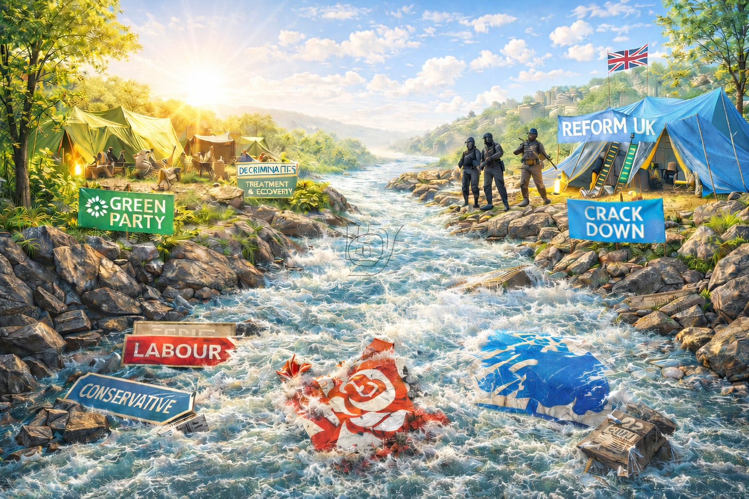 Two political movements now offer voters a far more defined choice. The Green Party of England and Wales argues that the war on drugs has failed and should be replaced with a public health approach. Reform UK argues the opposite, that the trade fuels crime and disorder and must be confronted through stronger enforcement.