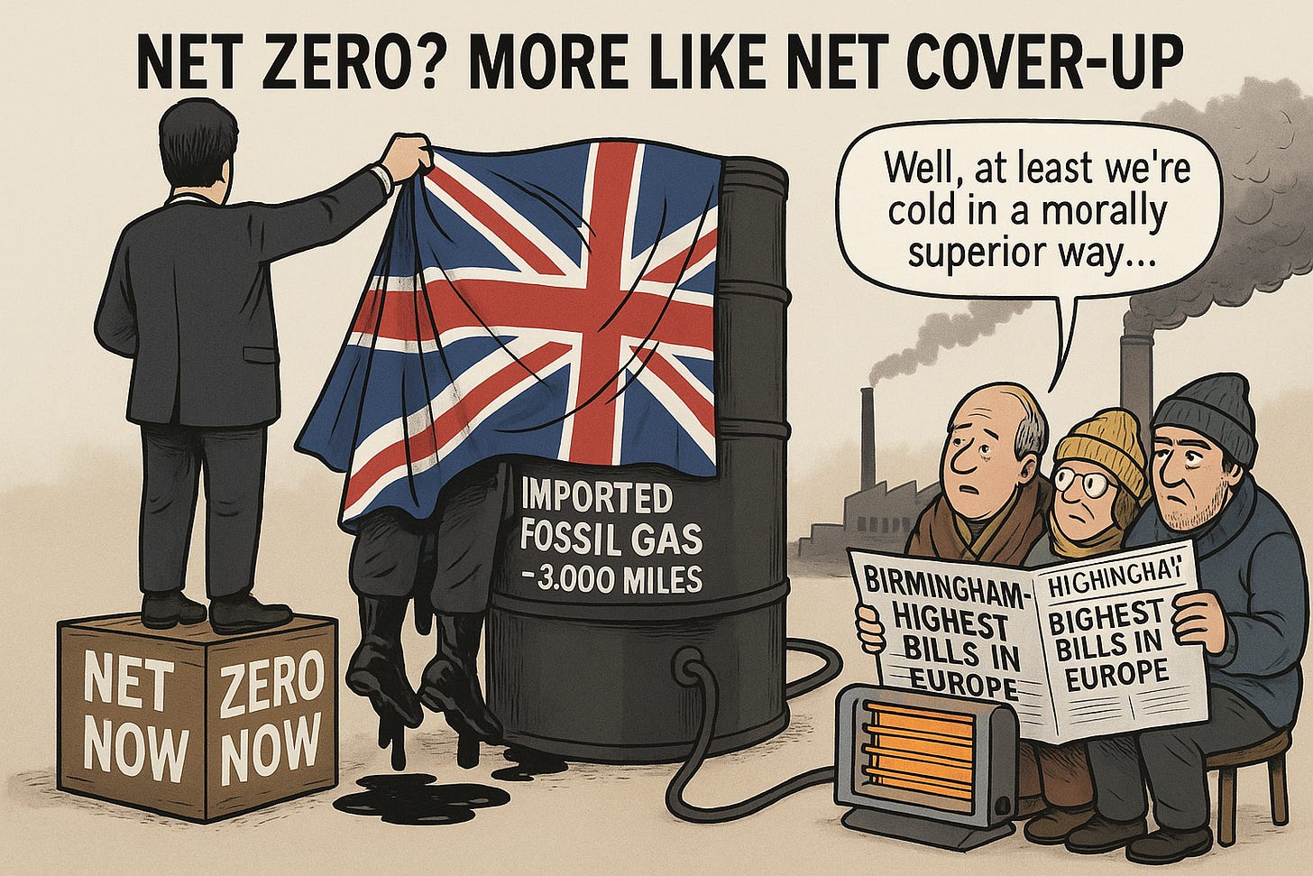 Here, we waste it — then gaslight voters into paying the highest fuel bills in the developed world.