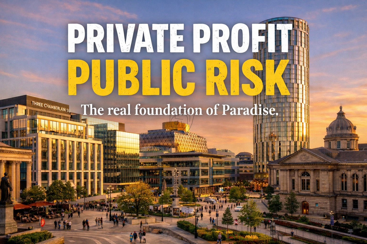 Urban regeneration is routinely presented as a triumph of entrepreneurial capitalism. Developers take risks. Investors deploy capital. Cities transform themselves through the magic of the market.