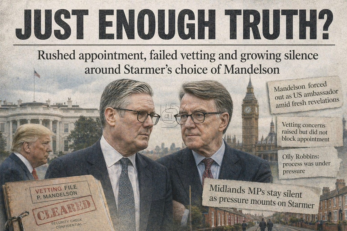 In other words, the file was already written. So the issue was never really whether Mandelson fitted the system. It was whether the system would bend to fit Mandelson. At the time, it did, because the priority was not procedural neatness but outcome, the relationship with Donald Trump and the belief that Mandelson, precisely because of who he was, could manage a volatile and unpredictable White House in a way others could not. That was the calculation, and for a while it held. But calculations like that come with a cost. Once you decide that the outcome matters more than the process, you lose the protection the process is meant to give you. The questions you parked do not go away. They return, louder and harder to contain.